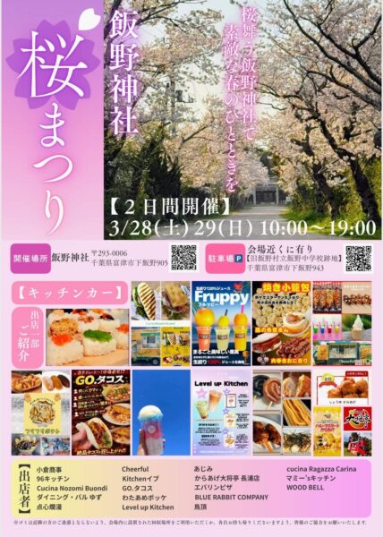今年は2日間にわたり、多彩なキッチンカーが集結する「桜まつり」が開催されるようですのでぜひ訪れてみてください。